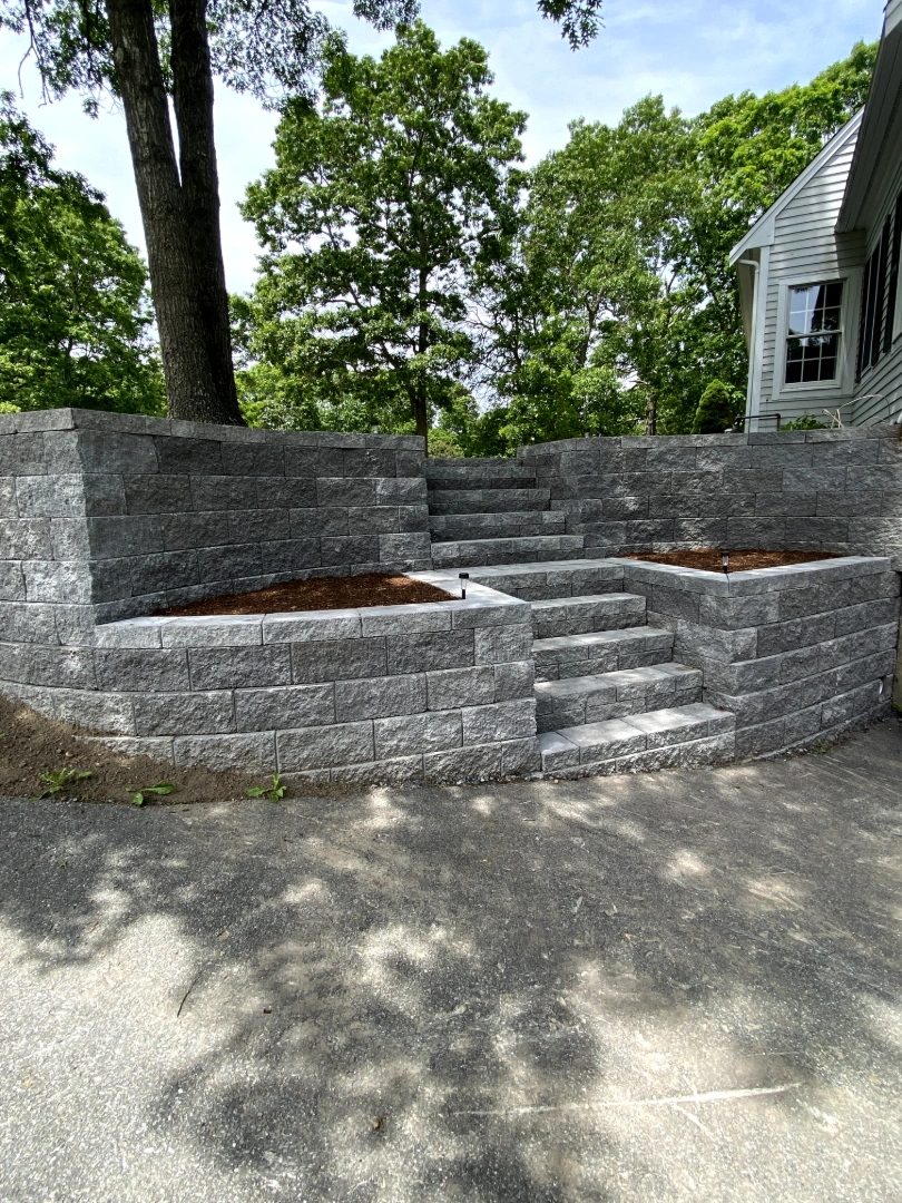 We work with a wide range of premium materials including Techo-Bloc and Unilock pavers, natural granite and bluestone, segmental retaining wall blocks, and premium sod varieties suited to New England's climate. We help you choose the right materials for your specific project and budget.